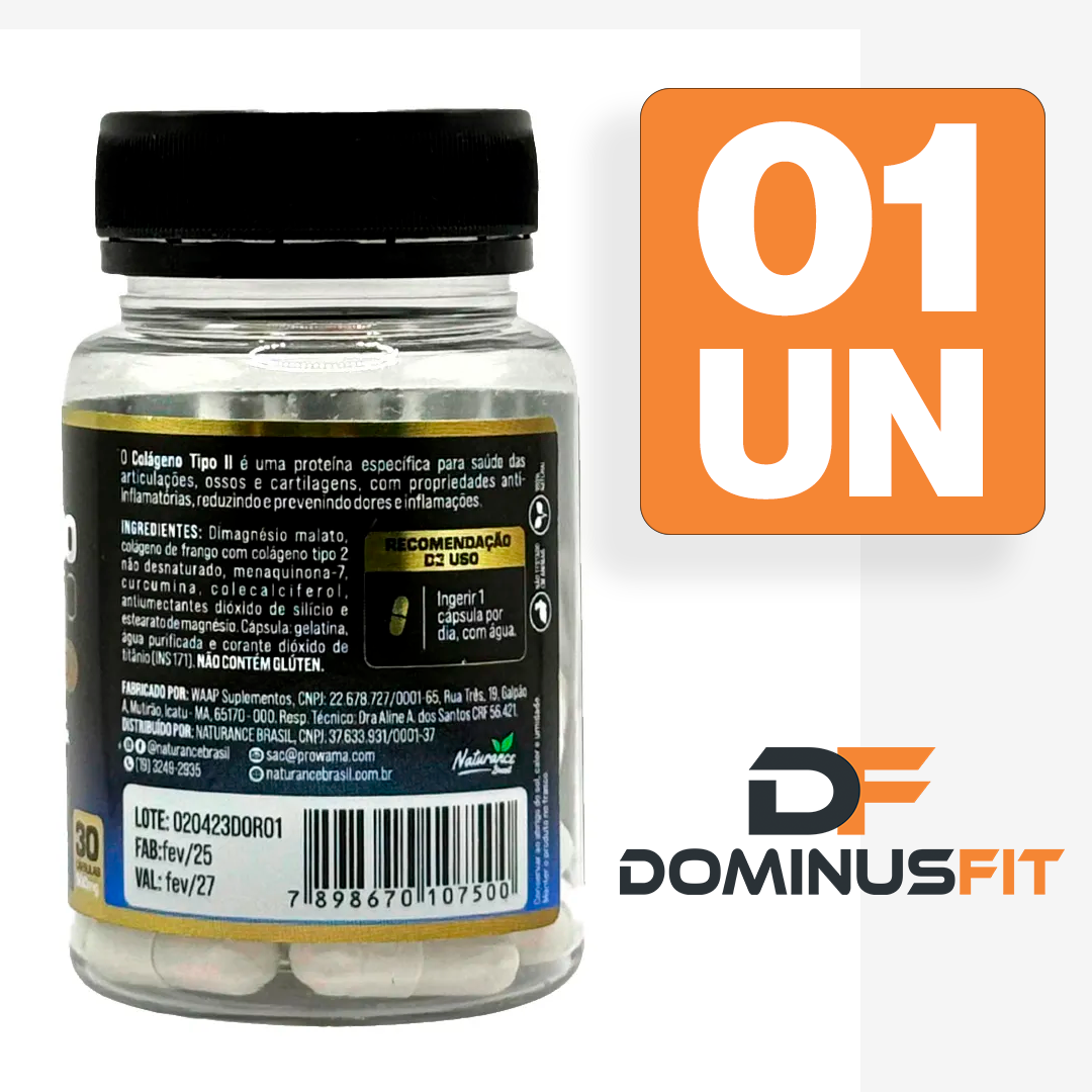 • Colágeno Tipo 2: Proteína presente naturalmente no organismo, o colágeno tipo 2 é um dos principais componentes estruturais da cartilagem.